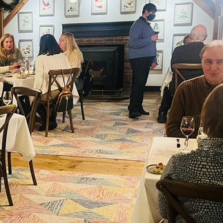 We start at 6 pm with apertifs followed by dinner at 6:45 pm. For apertifs, you can choose to sit in the great room by the fire or at your table. Instead of a long table, we sit you with your guests at your own table or if attending alone, we sit you with other guests. If you have dietary issues (gluten free or don't eat red meat), please give us a call and we'll see if we're able to accommodate your needs.